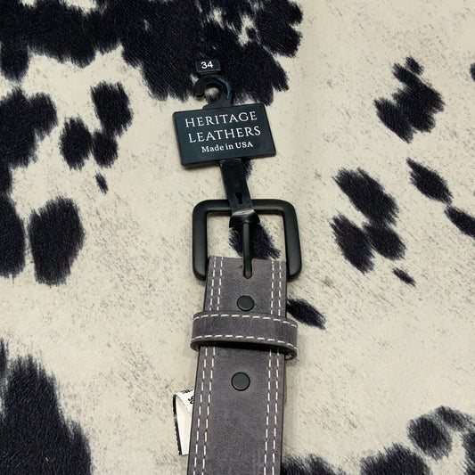Gray Leather Belt With White Stiching