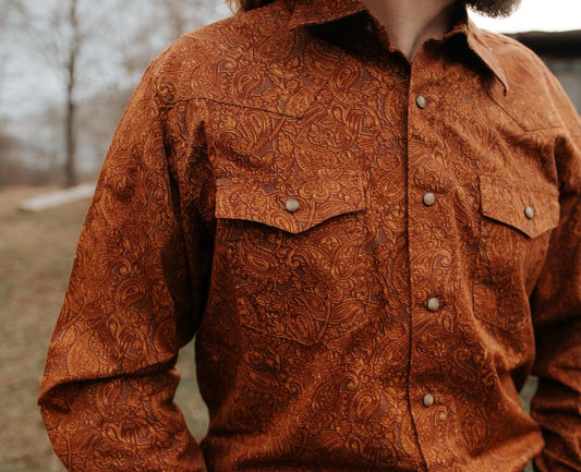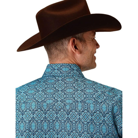 LAST ONE MEN'S GEOMETRIC PRINT BUTTON-DOWN WESTERN SHIRT