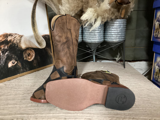 Big Kids Footwear Black/Tan Faux Leather Patchwork