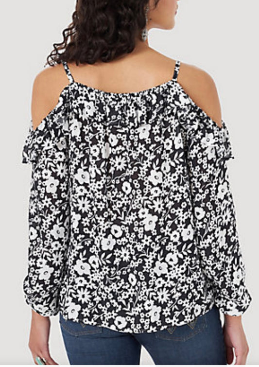Final Sale✨ Wrangler Retro Floral Black and White Cold Shoulder