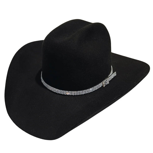 Twister Black Leather Hatband with Painted Floral Pattern and Engraved Scrolling