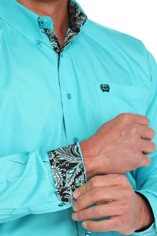 Cinch Turquoise Solid Button Up Men's Shirt