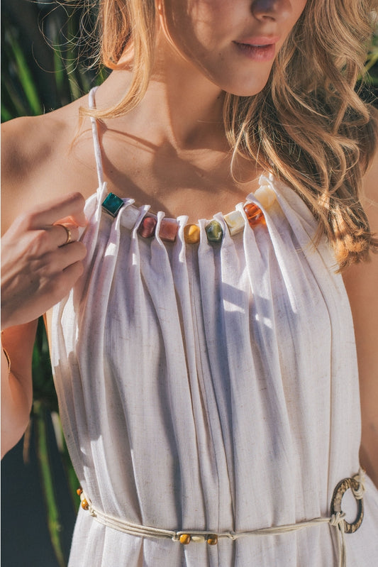 Multi Bead Linen Maxi Dress