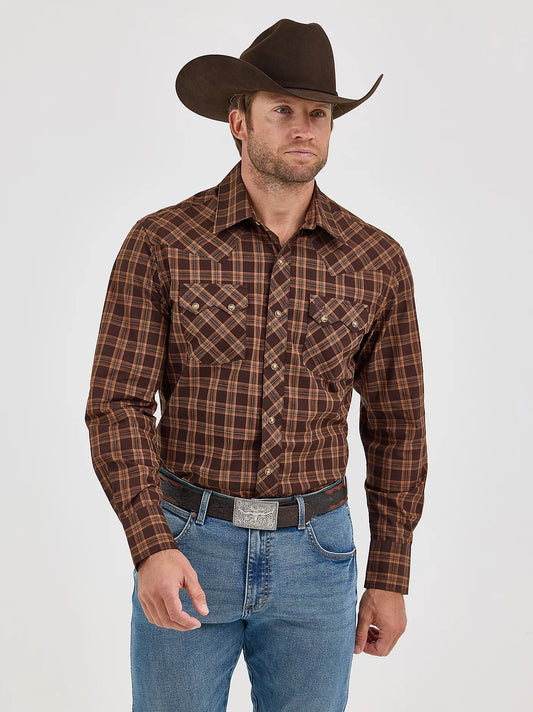 Wrangler George Strait Coffee Plaid Men's Button Up