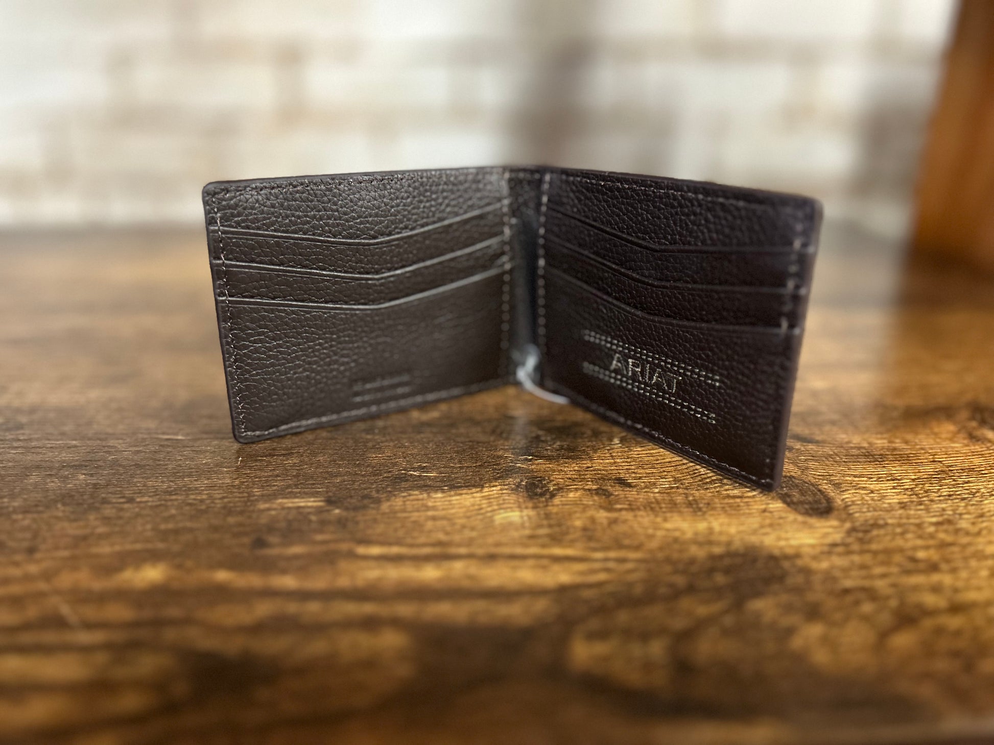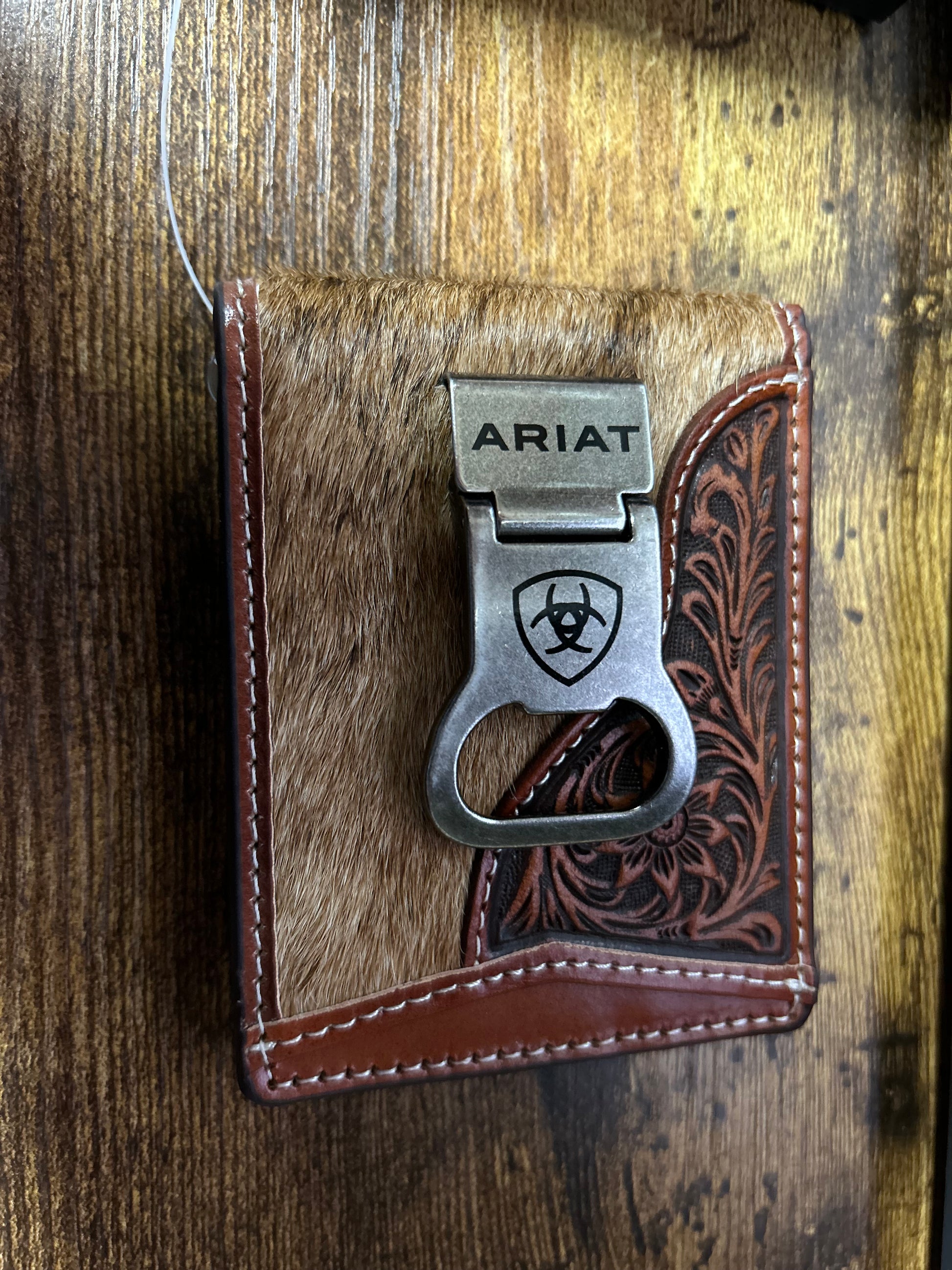Light Brown Cow Hair and with Top Grain Leather, Slim fit Design heavy duty stitching and multiple card slots with Money clip