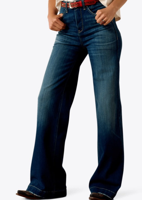 Relaxed from the high thigh and widens to a 25.5" leg opening