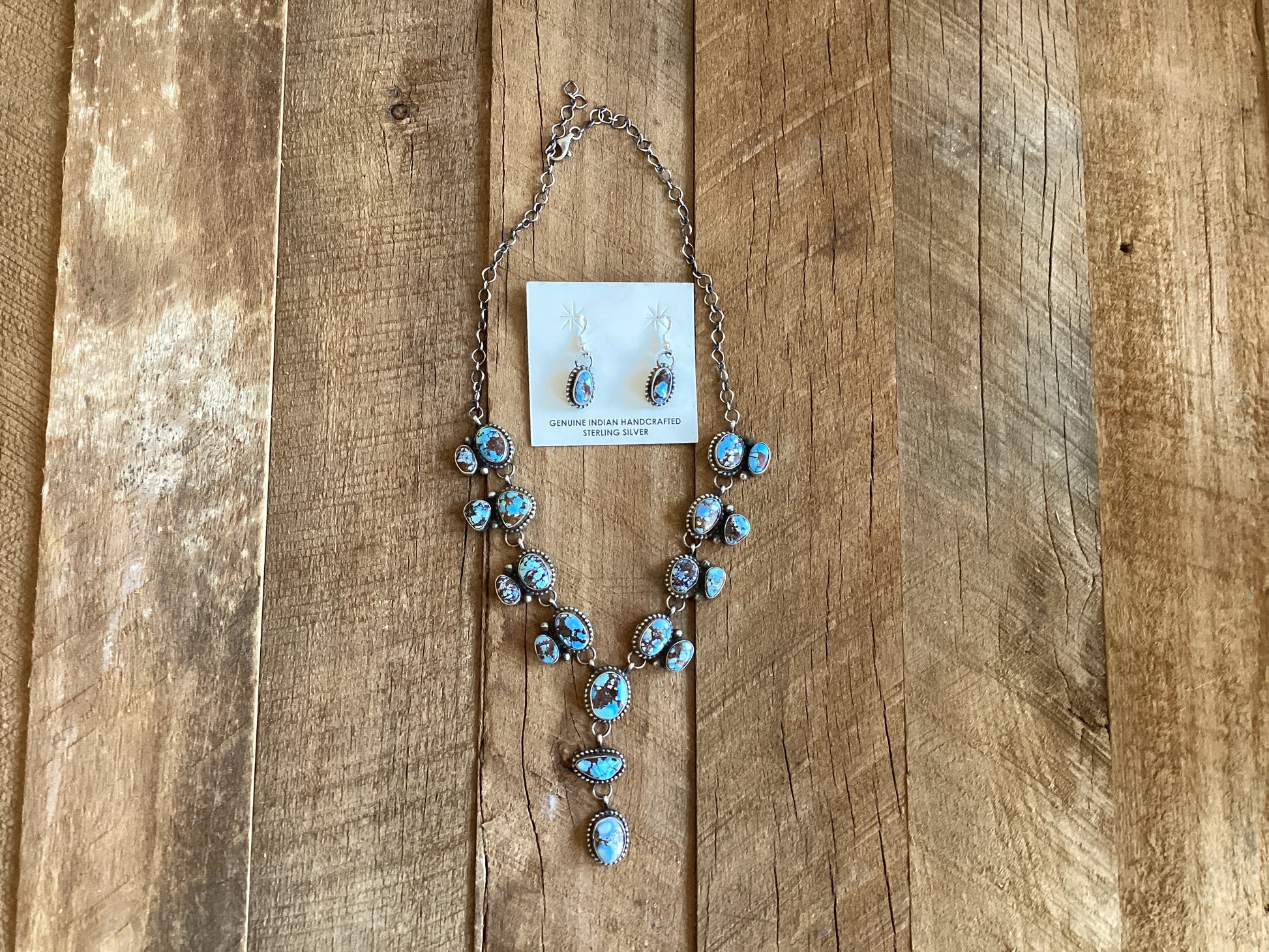 -Genuine Betta Lee Navajo Handmade SS Golden Hills Turquoise Set