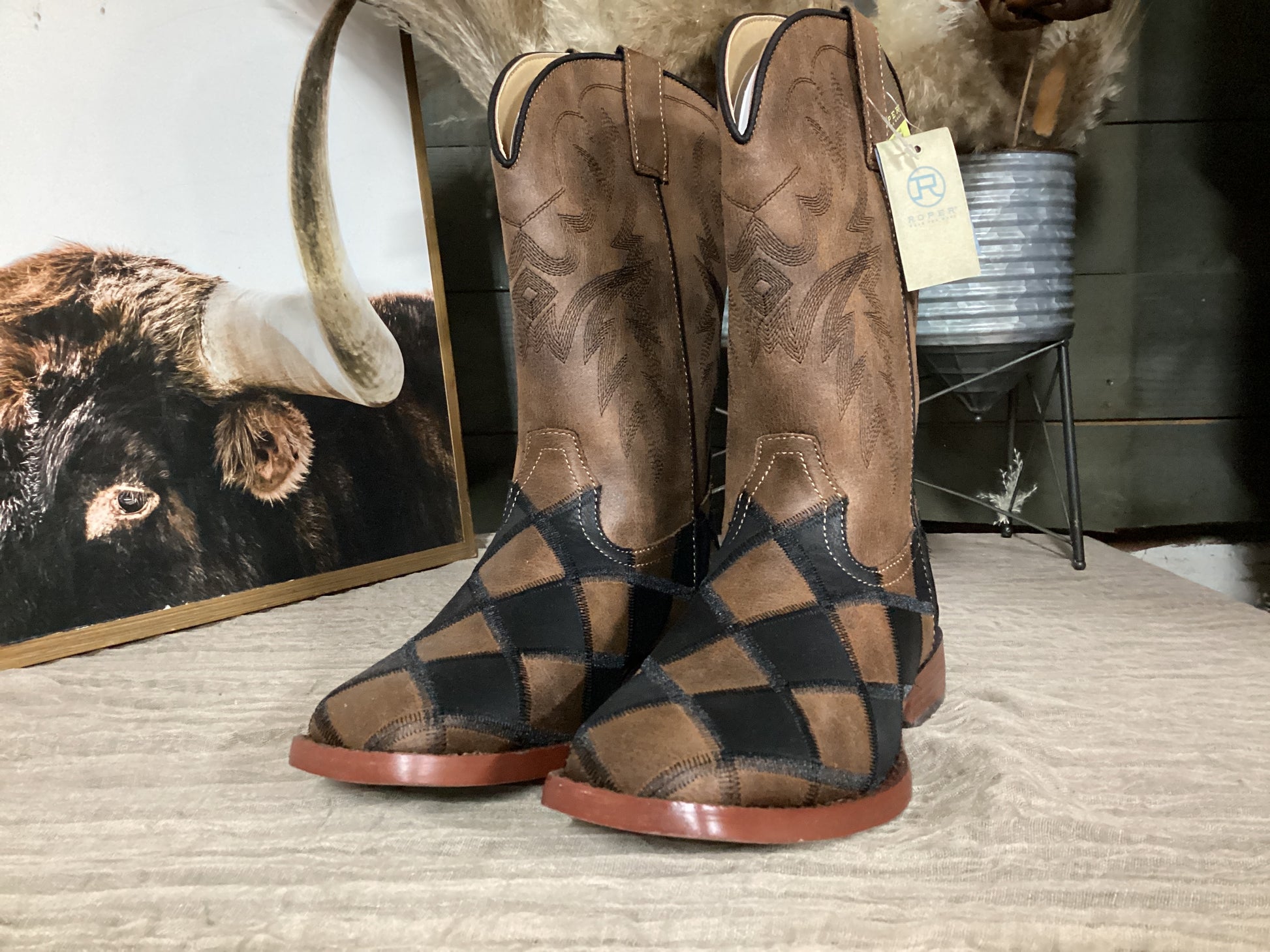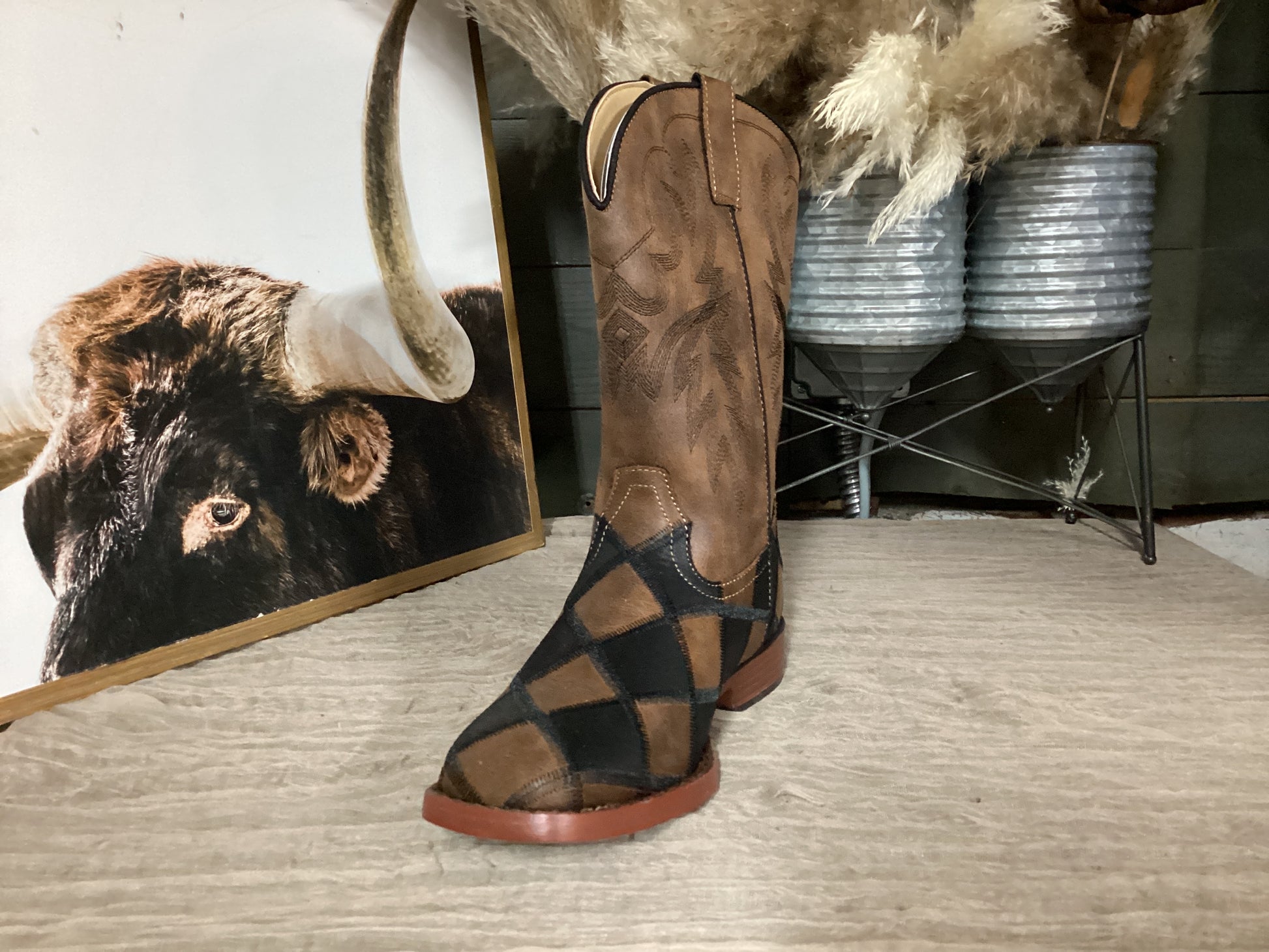 Big Kids Footwear Black/Tan Faux Leather Patchwork