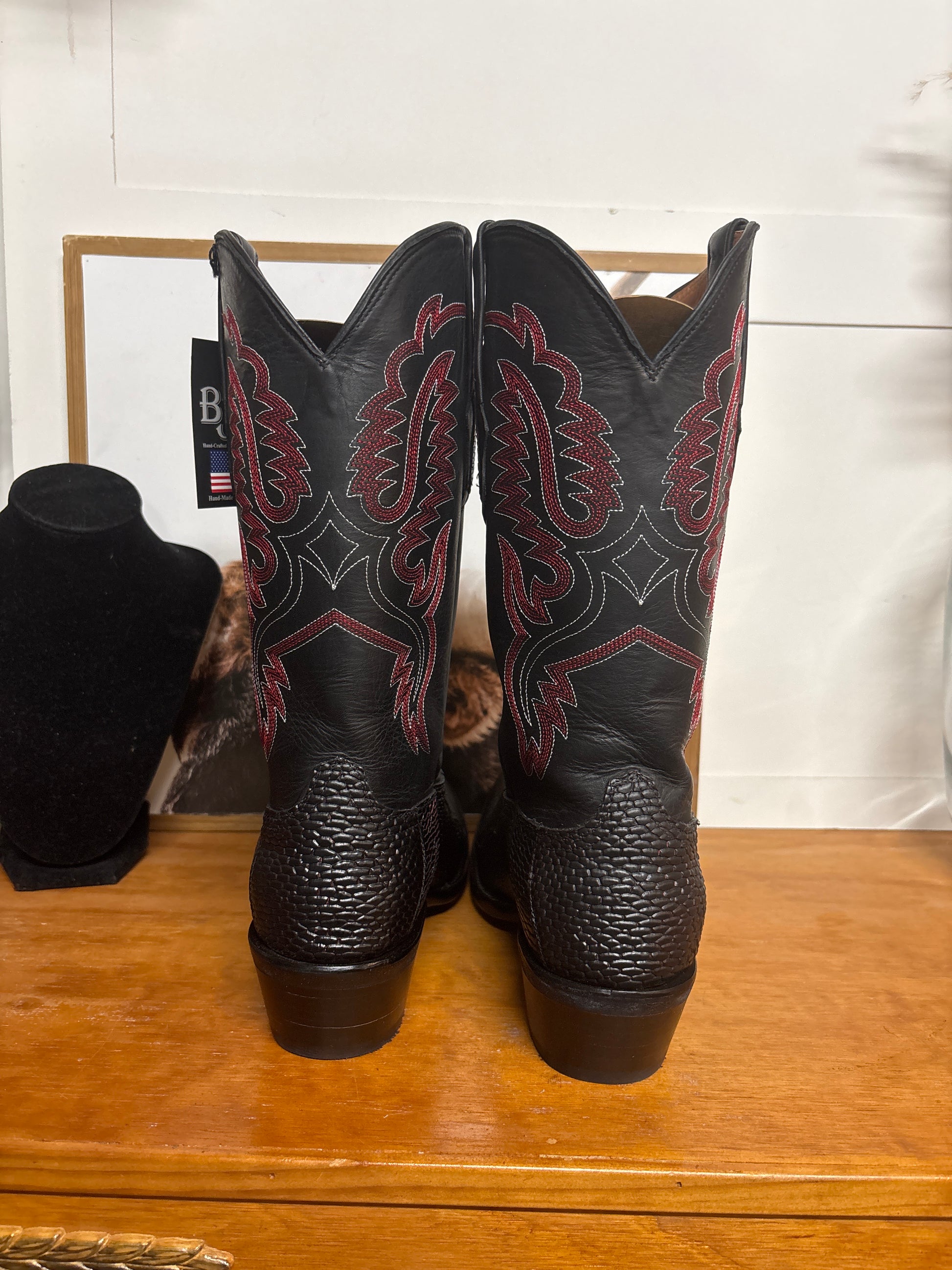 are rare, high-end exotic western boots featuring a unique texture that is both incredibly durable and visually striking. Like all Black Jack products, these are handcrafted in El Paso, Texas, using traditional boot-making methods.