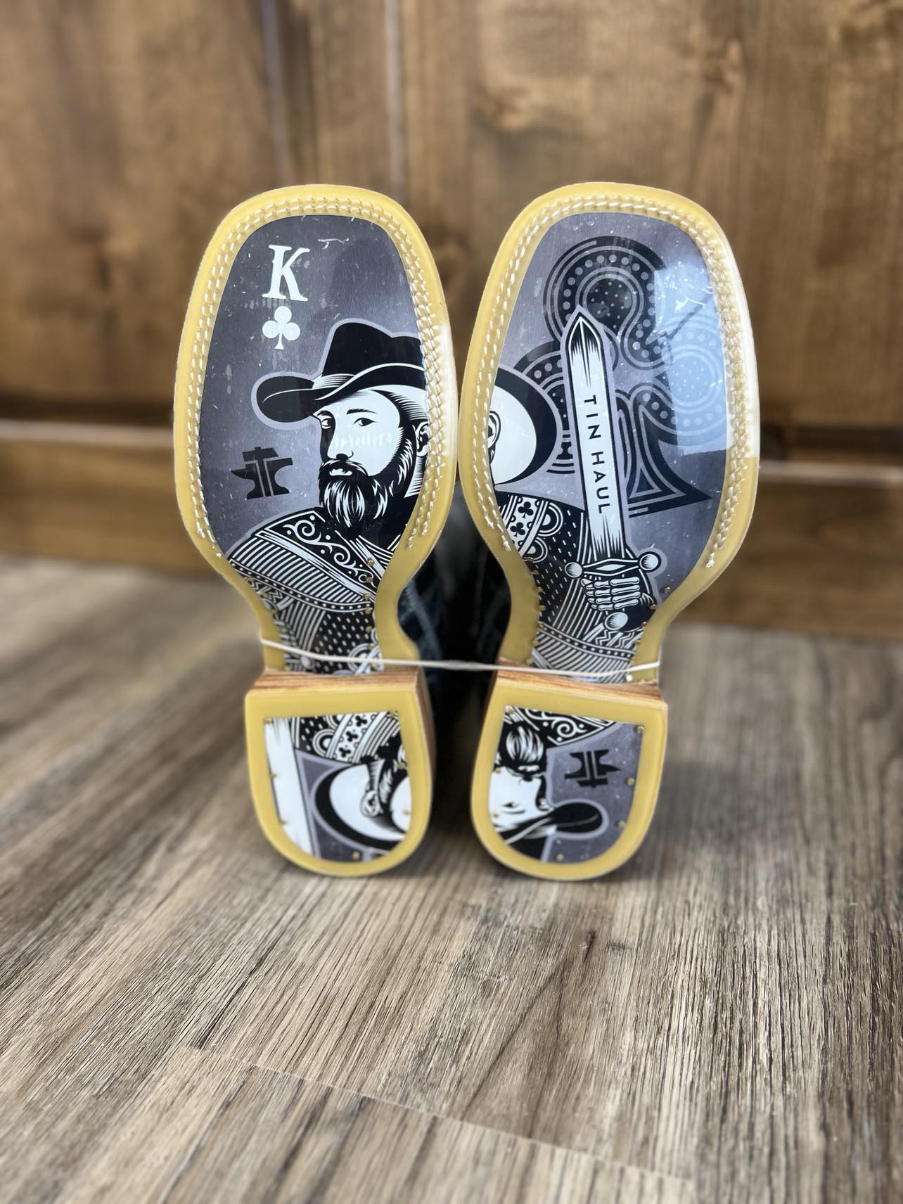 These Mens Tin Haul King of Clubs Square Toe Boots blend western style with a modern patchwork design. Crafted with premium leather and a wide square toe, these boots offer comfortable style and uncompromising durability. The King of Clubs sole adds a unique, eye-catching detail that elevates any look!