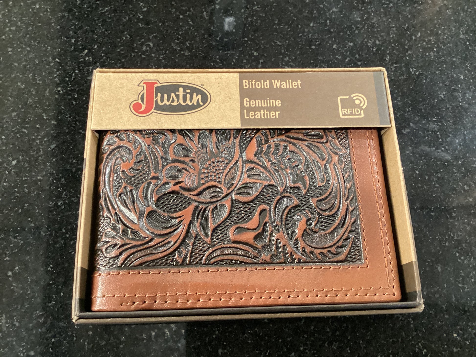 Leather LG Bifold Wallet Tooled W/Triple Stitch