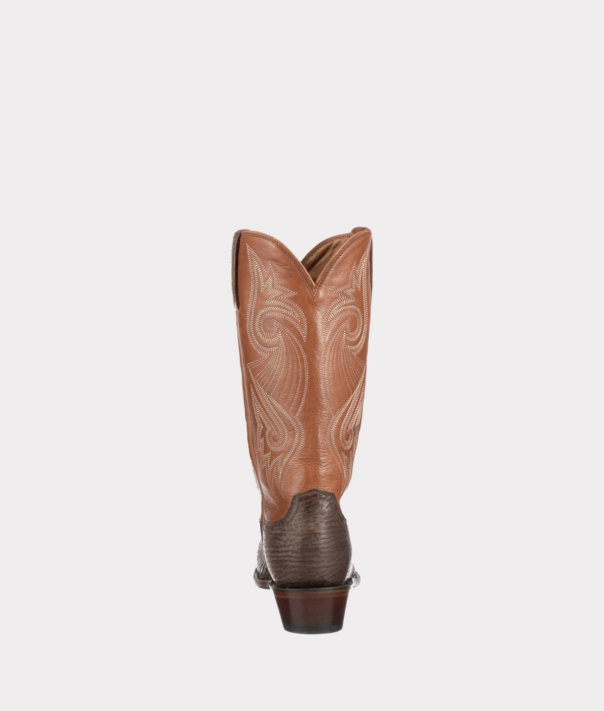 Part of the Palo Pinto collection, which is named after the West Texas county and pays homage to our home state, Mingus is a Western boot handcrafted from sturdy Shark leather enriched by an 8-row stitch pattern.