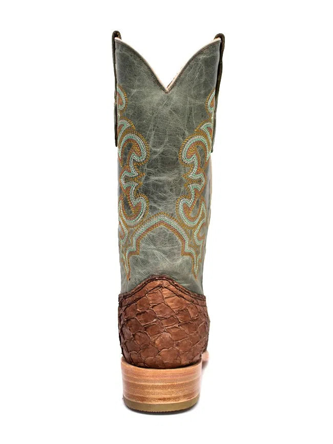 Mens Brown Turquoise Fish Embroidery Sq. Toe