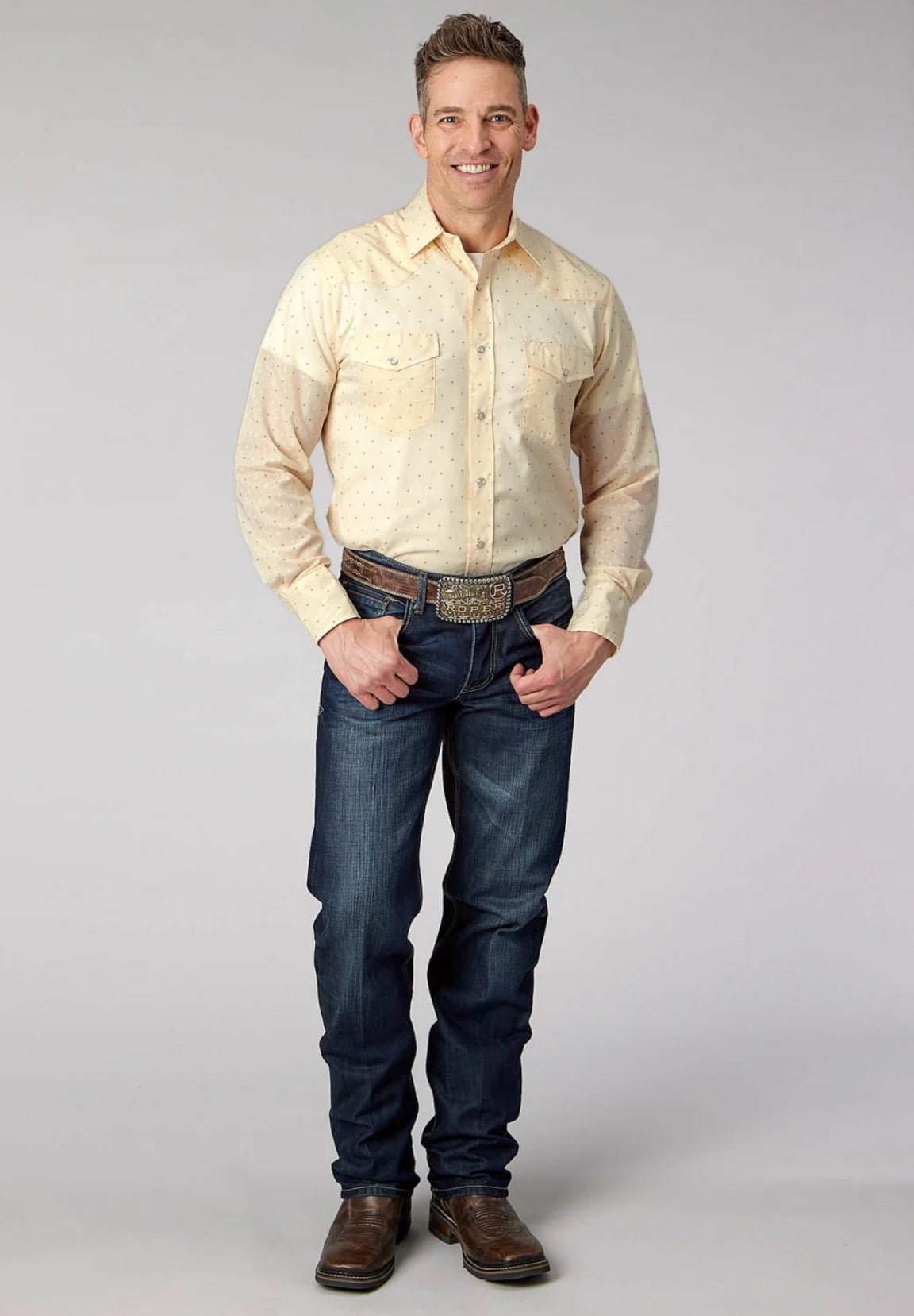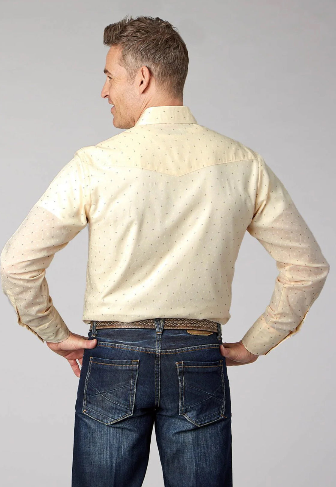 Roper Mens 2067 Diamond Wallpaper White Cotton Blend L/S Shirt