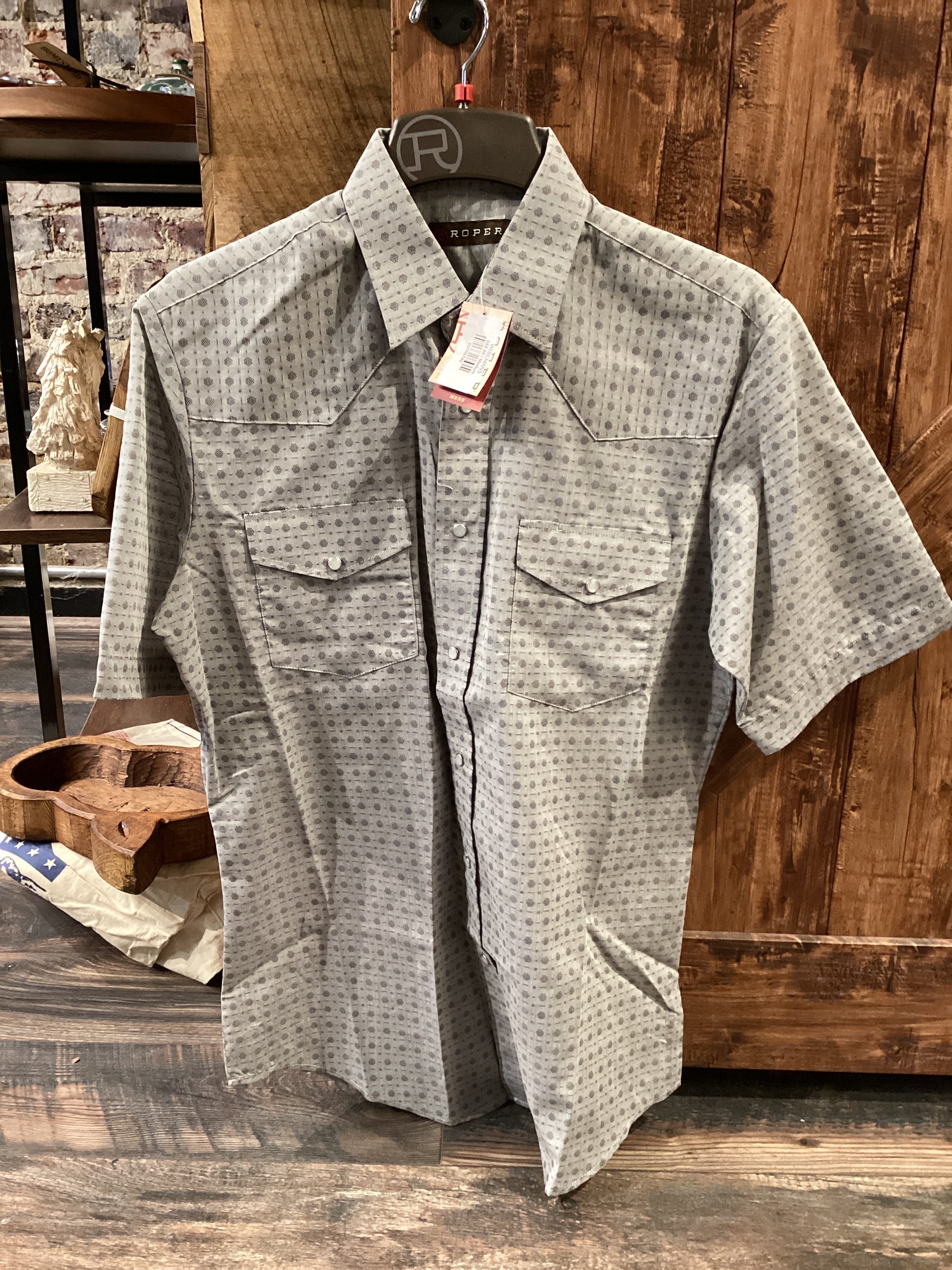 Roper Men's Short Sleeve Solid Tone on Tone Double Diamonds Snap Up Shirt