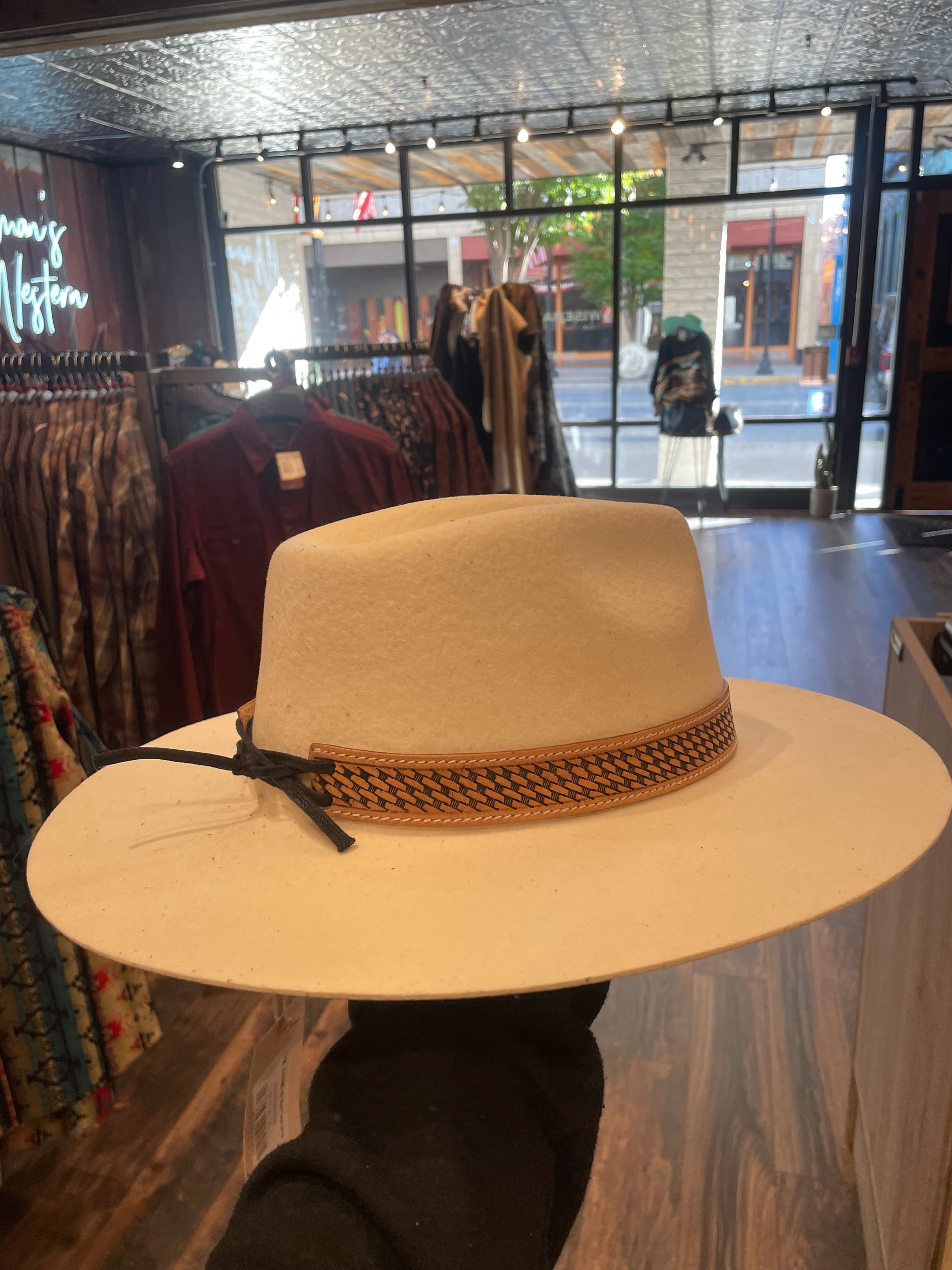 Stitched tooled leather hat band