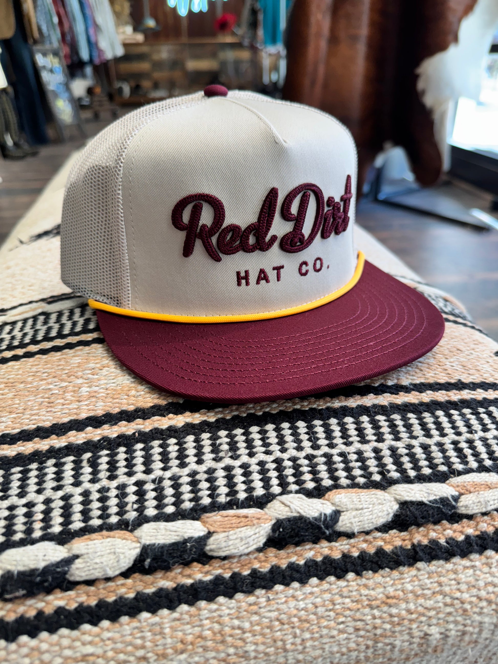 Cream, Maroon, and Yellow Red Dirt Hat Co. Snap Back Hat