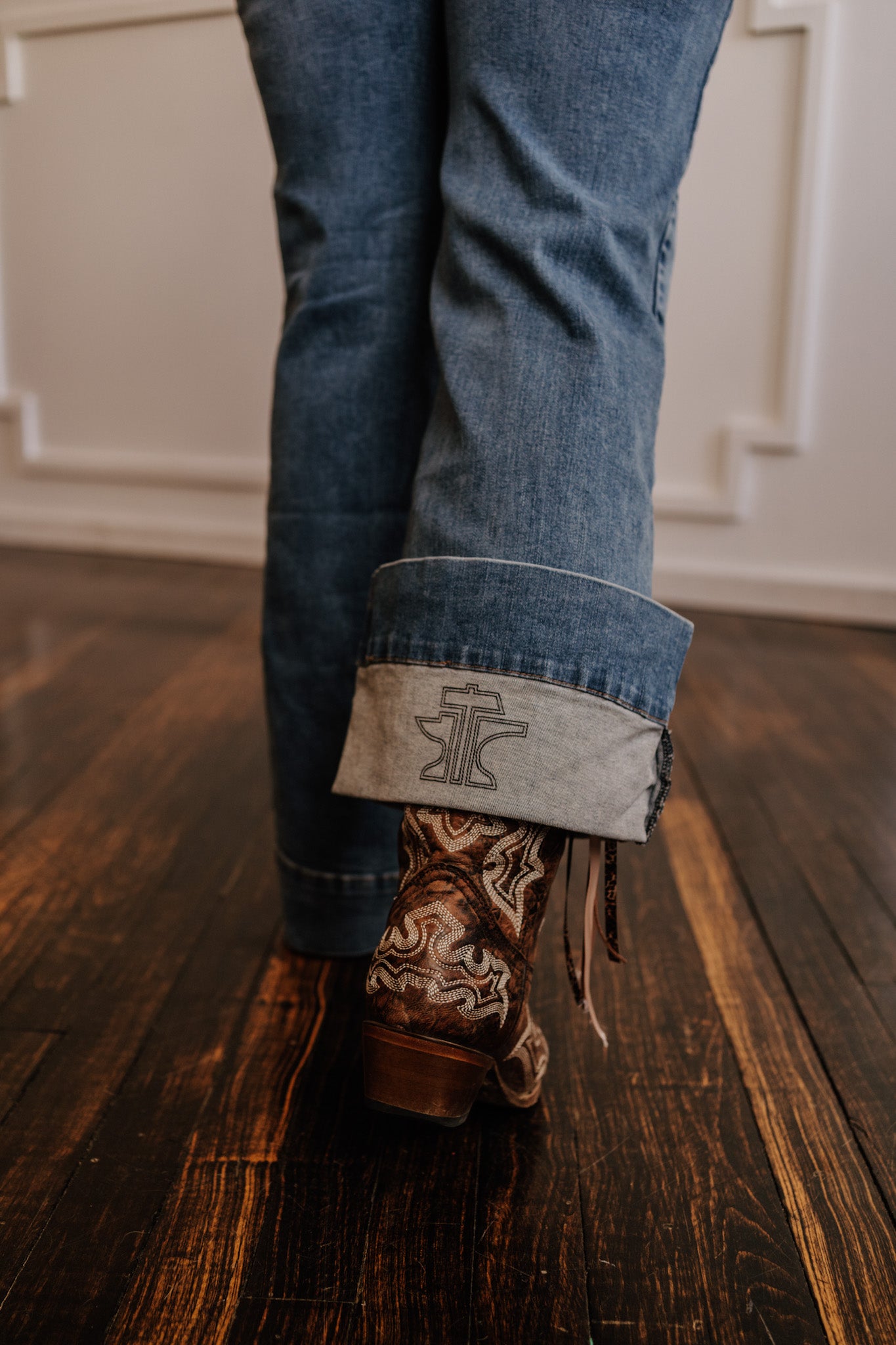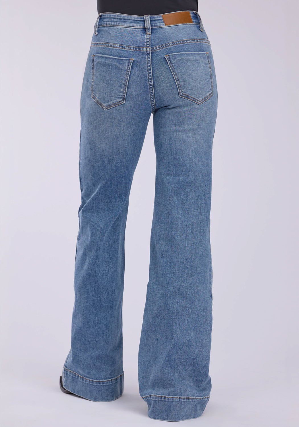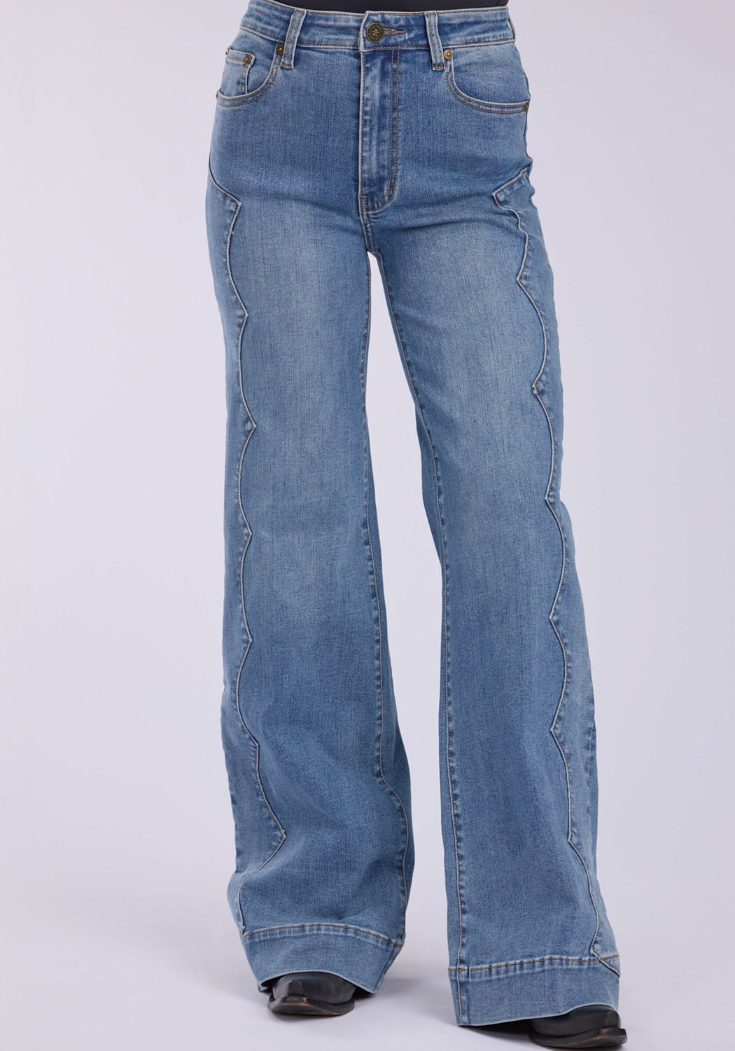 The Claire Fit * High Waisted * Fitted Through Hip * Wide Leg Opening * Sits Just Below Waist * 5 Pocket Style * Plain Back Pockets * Side Seam with Yoke Stitch Detail * Tin Haul Branded Button, Rivets, & Zipper