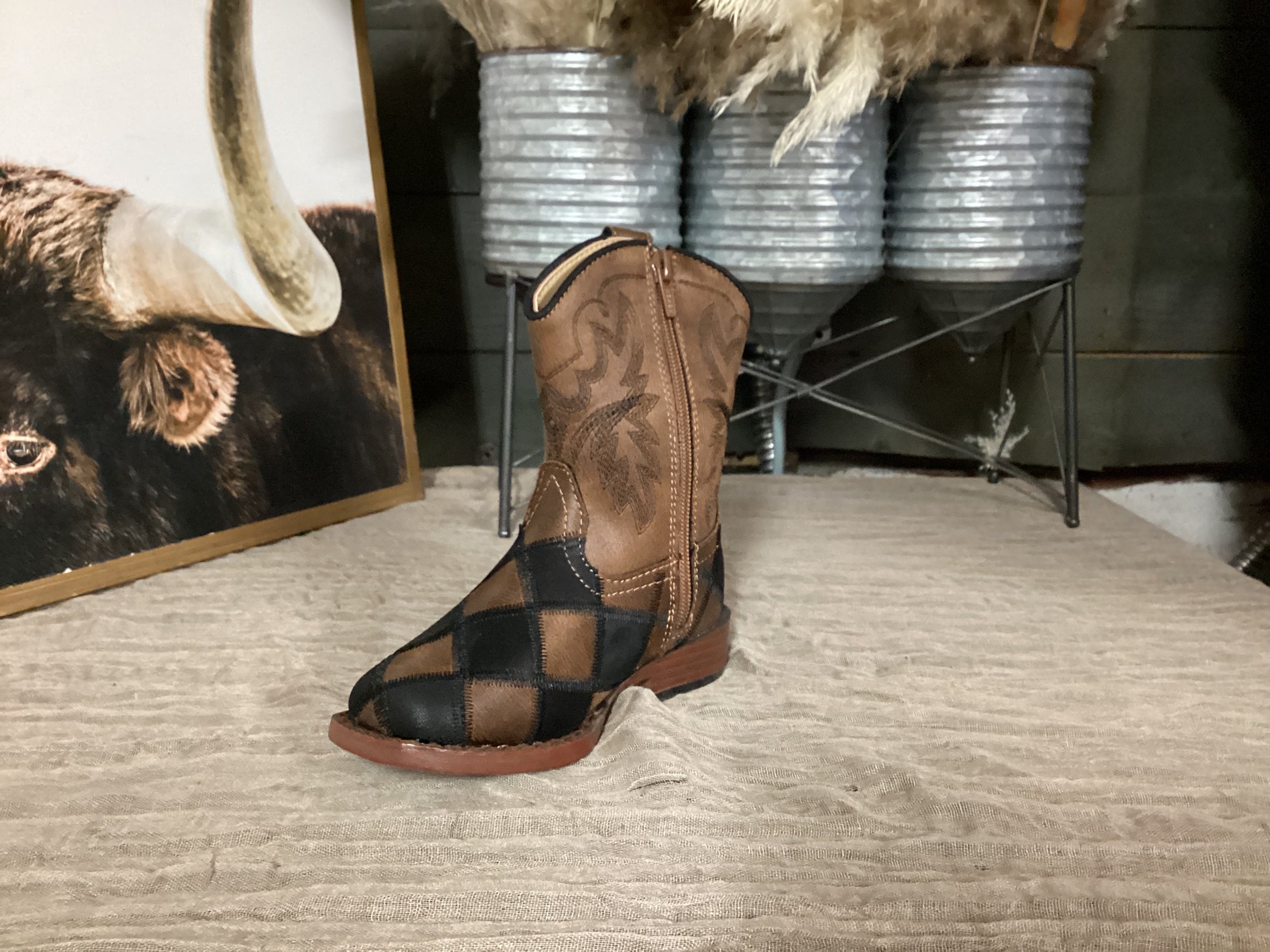 Toddlers Footwear Black/Tan Faux Leather Patchwork