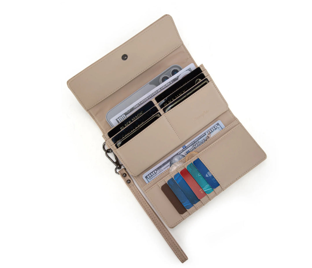 Wrangler Denim Woven Tri-Fold Wristlet/Wallet -Tan