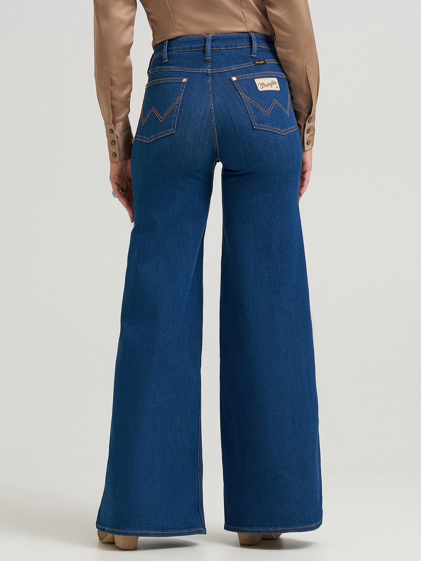 Blaze new trails in the Wrangler® x Lainey Wilson Cheeky Wide Leg Jean. Hand-picked by the Grammy award-winning country artist, this wide-leg jean offers an ultra-flattering A-line silhouette that hugs your curves and widens below the hips for a fuller, looser leg that walks the line between playful and sophisticated. It’s crafted from a comfy cotton blend with the perfect amount of stretch so you can seize every moment with total confidence. It also comes with all your favorite details, including the five-pocket styling, ‘W’ stitching, seven belt loops, a logo patch, as well as Lainey's embroidered initials on the coin pocket, nodding to just how hands-on she was in the creation of this collection.